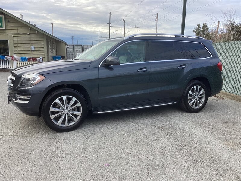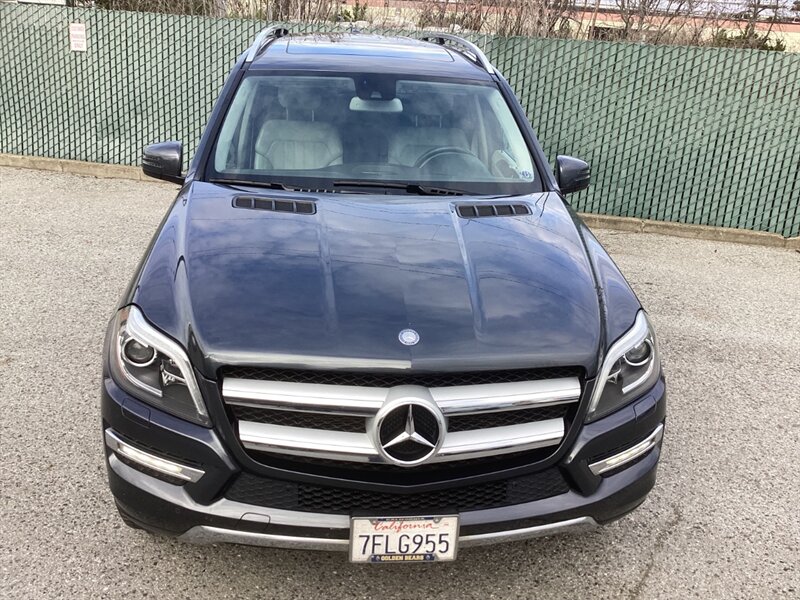 2014 Mercedes-Benz GL 450 4MATIC powered by a 4.7L twin-turbo V8 producing 362 hp and 406 lb-ft of torque. Excellent mileage — under 57,000 miles (averaging less than 5,000 miles per year). Factory equipment includes Mercedes-Benz 4MATIC all-wheel drive; seating for seven with a fold-flat third row; leather upholstery with wood trim; power-adjustable, heated front seats with memory; tri-zone automatic climate control; power liftgate and panoramic sunroof; Bi-Xenon headlights with LED daytime running lights; COMAND infotainment with Bluetooth and USB inputs and premium audio; parking sensors and rearview camera; plus a full suite of airbags, ABS, and stability/traction control.